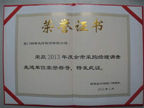祝賀翔鷺化纖被授予“2013年度采購經(jīng)理調(diào)查先進(jìn)單位”的榮譽(yù)稱號(hào)2013年度,國家統(tǒng)計(jì)局開展采購經(jīng)理(PMI)調(diào)查并進(jìn)行多家參與評(píng)比,我司嚴(yán)格按照要求,認(rèn)真、及時(shí)、準(zhǔn)確上報(bào)調(diào)查報(bào)表與分析材料,為政府部門提供了詳實(shí)的信息。 為此我司在2013年度,全省采購經(jīng)理調(diào)查工作進(jìn)行考核評(píng)比中,被授予“2013年度采購經(jīng)理調(diào)查先進(jìn)單位”的榮譽(yù)稱號(hào)。 今后,我司將繼續(xù)做到數(shù)據(jù)報(bào)送及時(shí)準(zhǔn)確,并堅(jiān)持?jǐn)?shù)入一庫、數(shù)出一門、一數(shù)一源的統(tǒng)計(jì)原則,充分發(fā)揮統(tǒng)計(jì)工作在企業(yè)管理中的數(shù)據(jù)信息支撐作用。