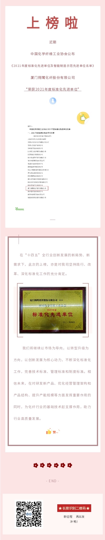 翔鷺化纖榮獲2021年度中國(guó)化學(xué)纖維工業(yè)協(xié)會(huì)標(biāo)準(zhǔn)化先進(jìn)單位