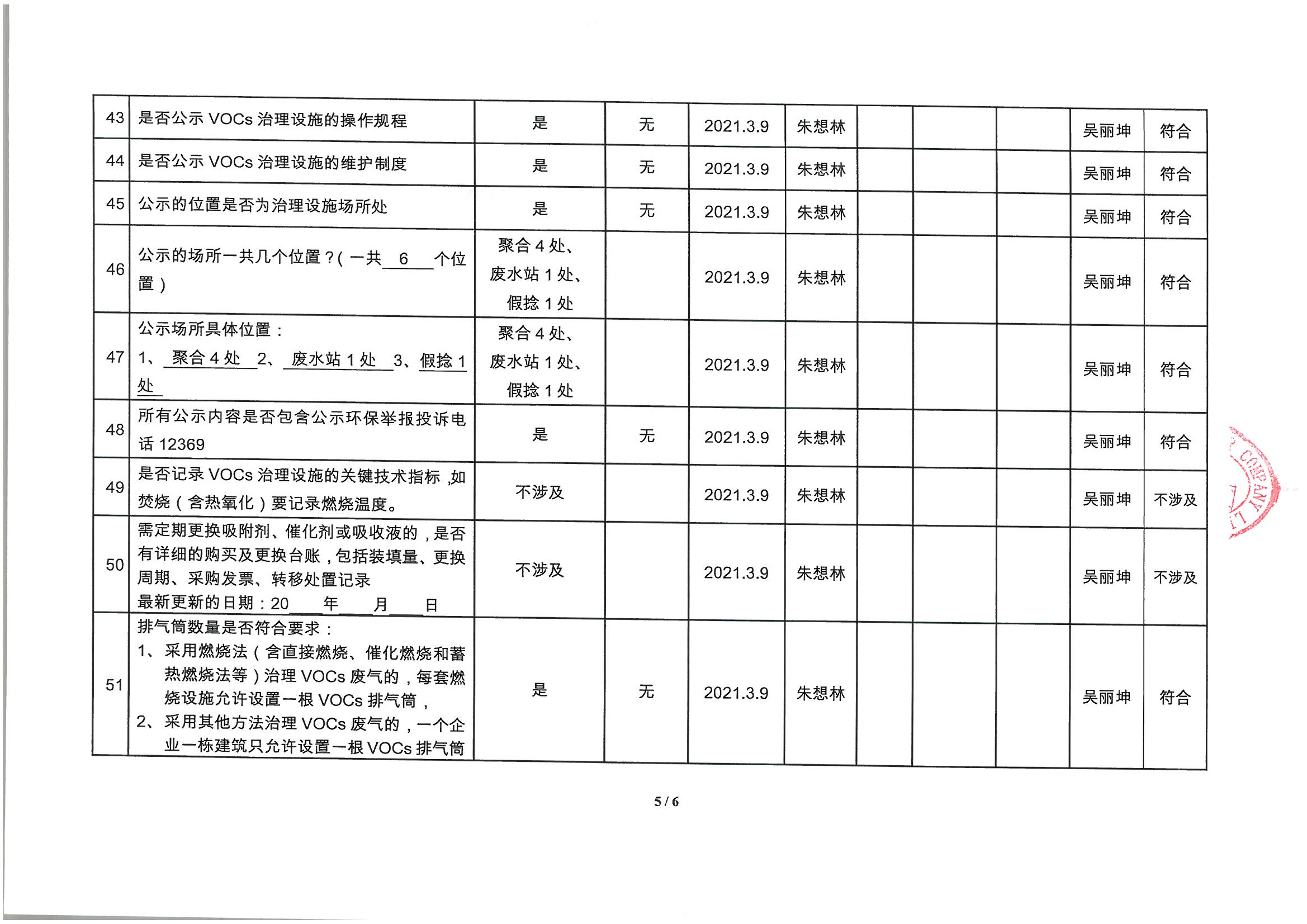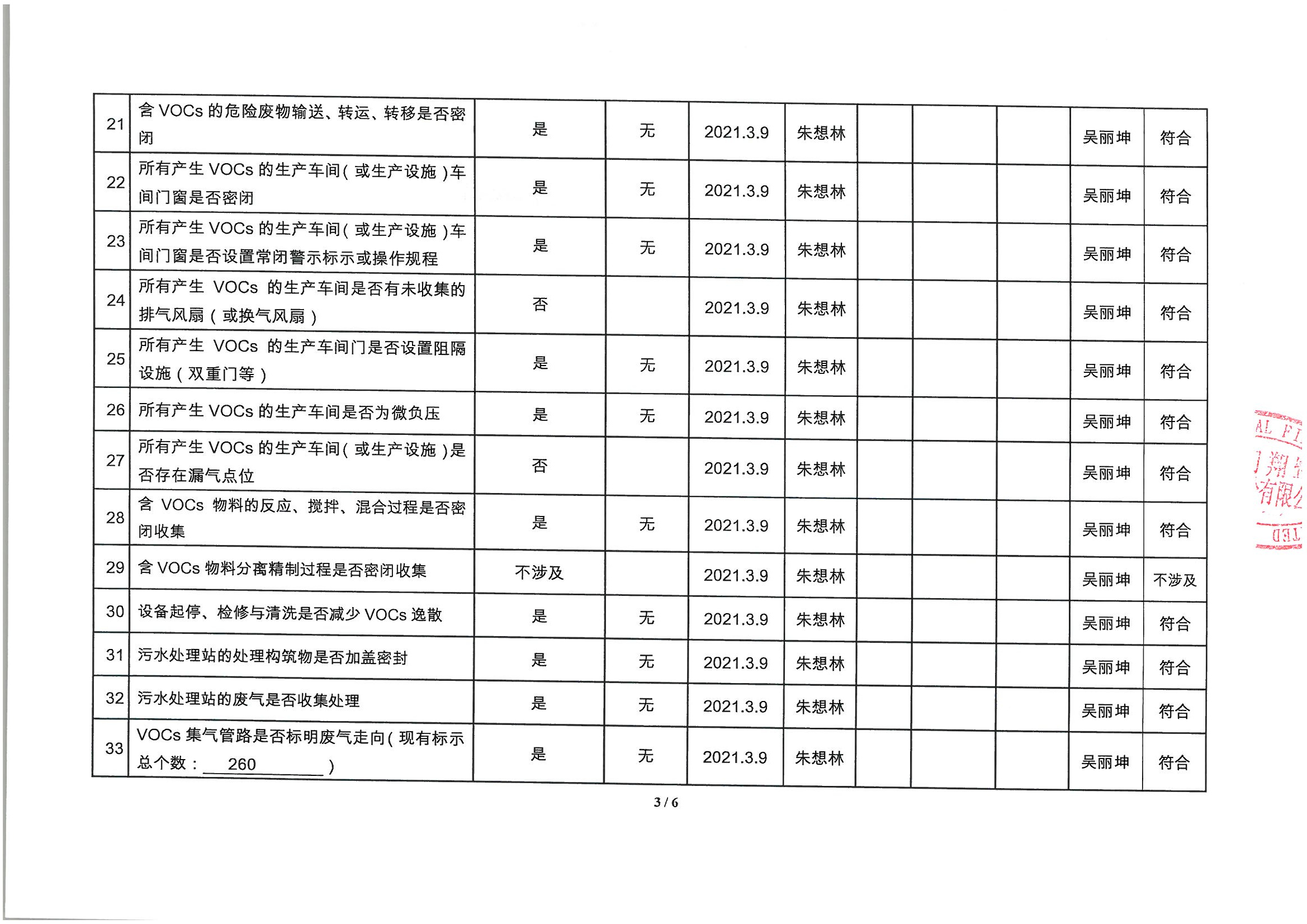 廈門市揮發(fā)性有機(jī)物污染防治企業(yè)自查表 (2021年 第一季度)
