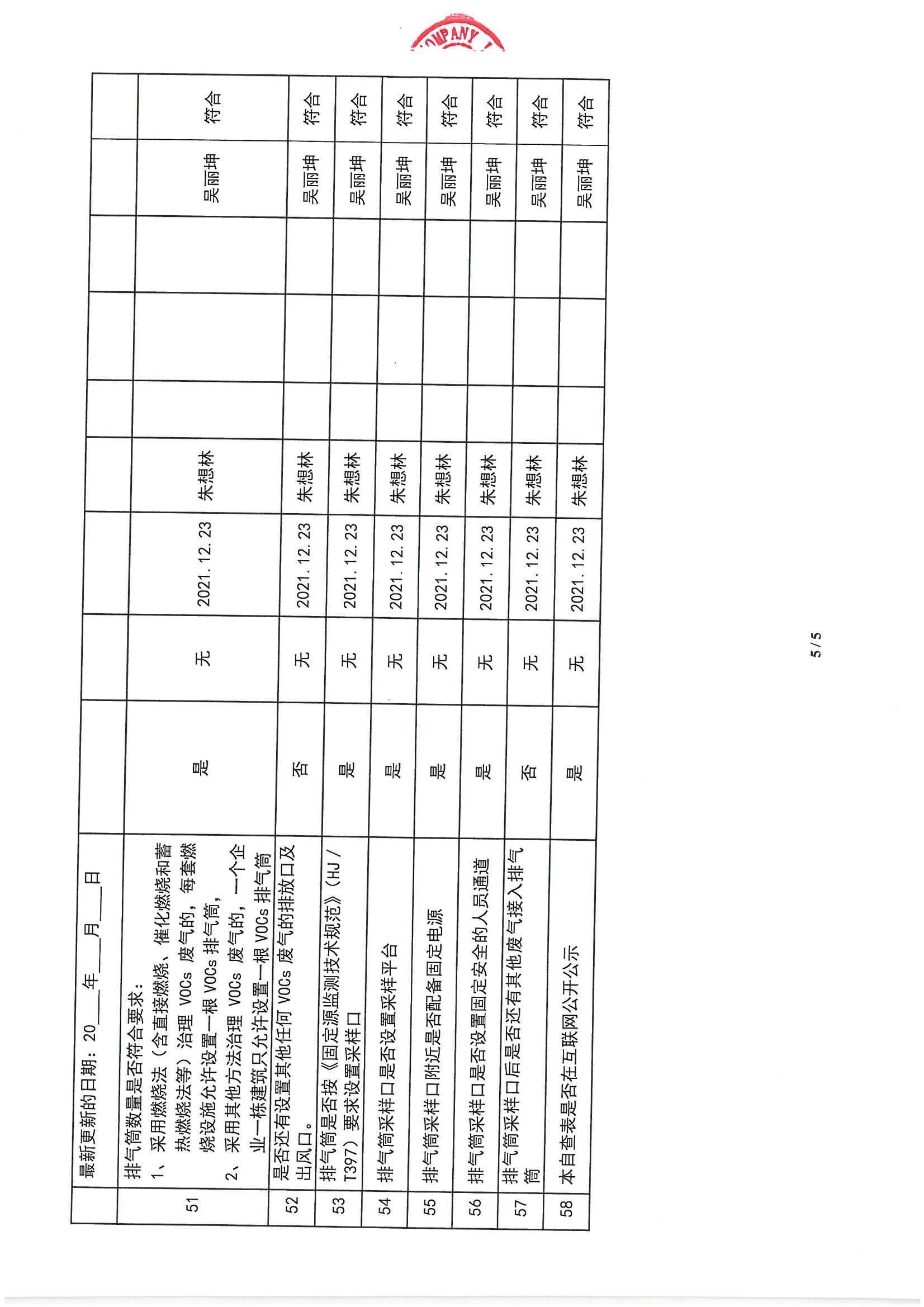 廈門市揮發(fā)性有機(jī)物污染防治企業(yè)自查表 (2021年 第四季度)