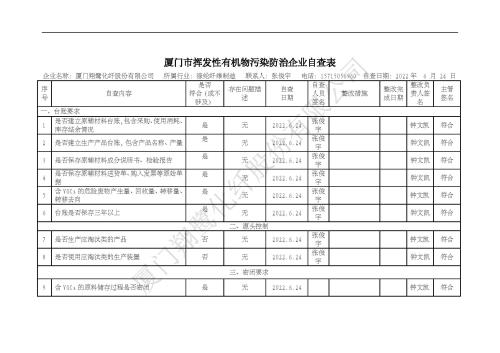 2022年第三季度揮發(fā)性有機物整治企業(yè)自查表